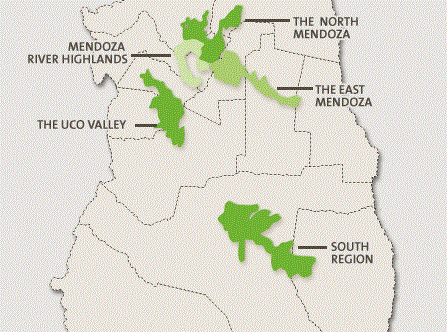 Ya en territorio de Mendoza, la provincia vitivinícola por excelencia, esta zona comprende las áreas irrigadas por el río del mismo nombre, de suelos de escasa pendiente y profundos. Con temperaturas promedio de 25º C en verano y 7º C en el mes más frío, produce vinos de gama media y parte de los mejores vinos del país.