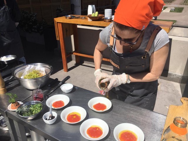 During the class three different dishes are made while the visitors interact with Nadia in their preparation. At the same time visitors taste those dishes accompanying them with wines from Bodega Monteviejo. Once the class is over visitors will get a cookbook with the dishes that they prepared and an apron as a souvenir of their culinary experience in our winery.